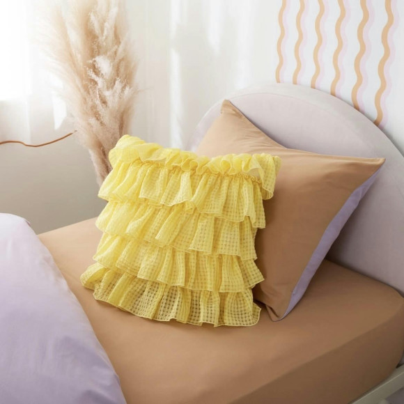 วางปกหมอนอิงที่สว่างไสวบนข้างหมอนอย่างฤดูใบไม้ผลิ และทำการออกเสียงสูงต่ำของการประสานที่แนะนำด้วย